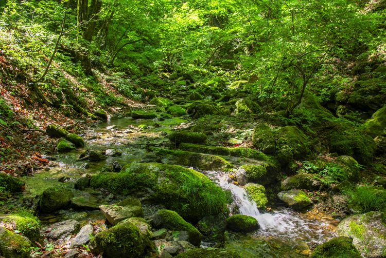 Zu einer Wanderung rund um den Berg Mitake gehört auch ein Besuch des Steingartens. Das klare Wasser, das hier durch moosbedeckte Felsen fließt, ist eine der spektakulärsten Sehenswürdigkeiten Japans. Die beste Reisezeit ist Mai und Juni.