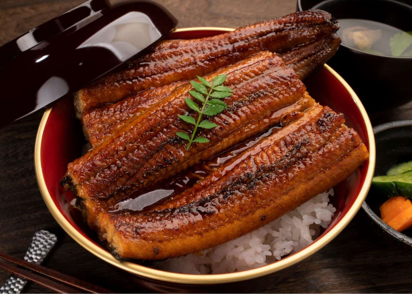 Grilled eel glazed with a sweet soy-based sauce is layered over steamed rice in this indulgent dish, traditionally enjoyed as a “stamina booster” during Japan’s sweltering summers.