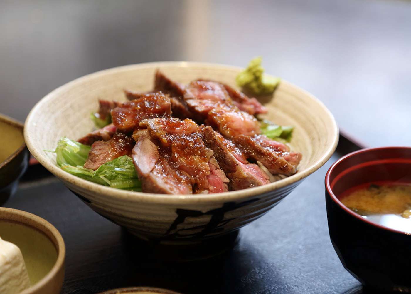 Also known as gyutan-don, this rich dish features thinly sliced beef tongue that is grilled, flavored with soy sauce, and served over rice.