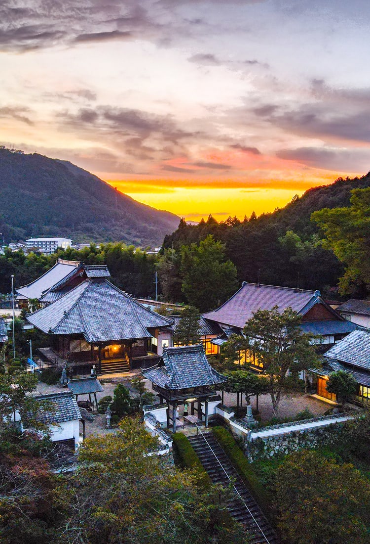 Shoureki-ji Temple is nestled in the mountains near Ayabe, about two hours north of Kyoto by train. The temple welcomes guests of all faiths to relax, recharge, and experience temple life. The temple accommodates just one group at a time to experience a shukubo temple stay, for a tailored, personalized retreat. Enjoy the warm hospitality of the head priest and his wife, who prepare traditional meals and guide visitors through temple experiences such as morning prayers and copying sutras.