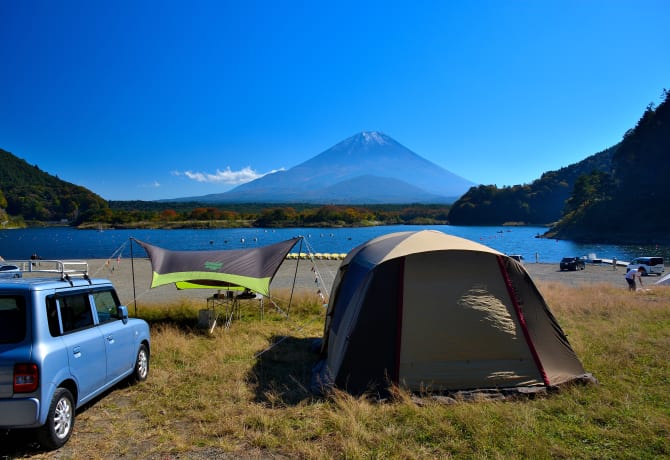 As the largest of the Fuji Five Lakes, Lake Yamanaka is a good option for finding overnight accommodation, with a handful of hotels and inns in the area. You’ll also find hot springs on the western side of the lake with gorgeous views of Mt. Fuji in the distance.