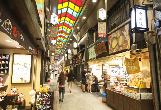 Starting as a fish market in the 14th century, this is now known as the kitchen of Kyoto. The 390-meter shopping street is lined with over 100 shops and restaurants. Anything food related, from knives to fresh seafood, can be found here. Shop and snack your way through.