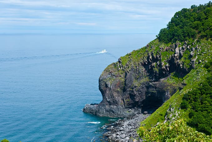 See a 200-meter-high cliff, strange-shaped rocks and sea caves, various waterfalls that pour into the ocean, and a view of the Shiretoko Peninsula that cannot be seen from land. Depending on the season, you can see brown bears going after salmon and schools of dolphins swimming freely in the vast waters. Runs from late April to about late-October.