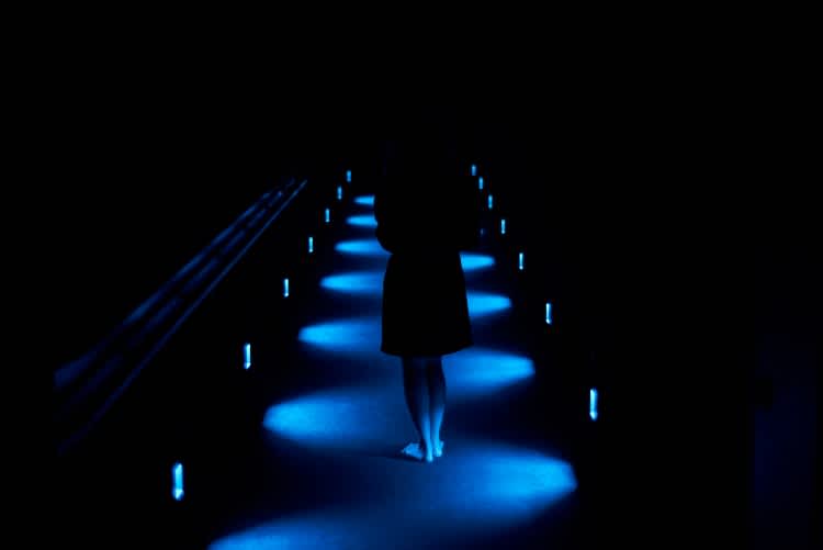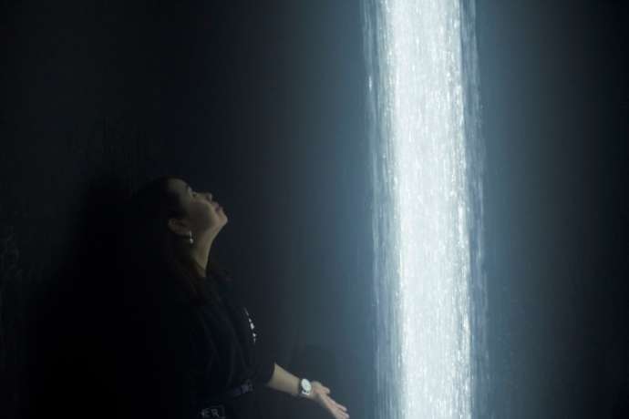 Visitors then enter a dark, sloped hallway where water trickles under your feet. The surprising feeling of walking through a shallow river has the effect of sharpening the senses.