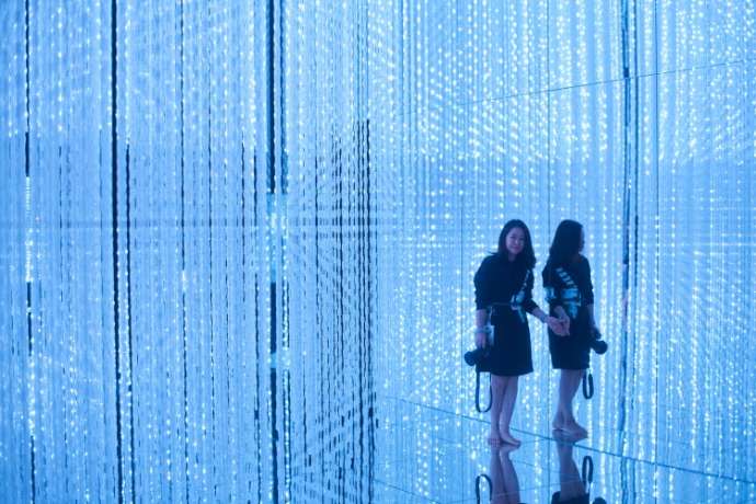 Drawing on the Water Surface Created by the Dance of Koi and People – Infinity is another expansive room where guests stand in what resembles a shallow pool of water.