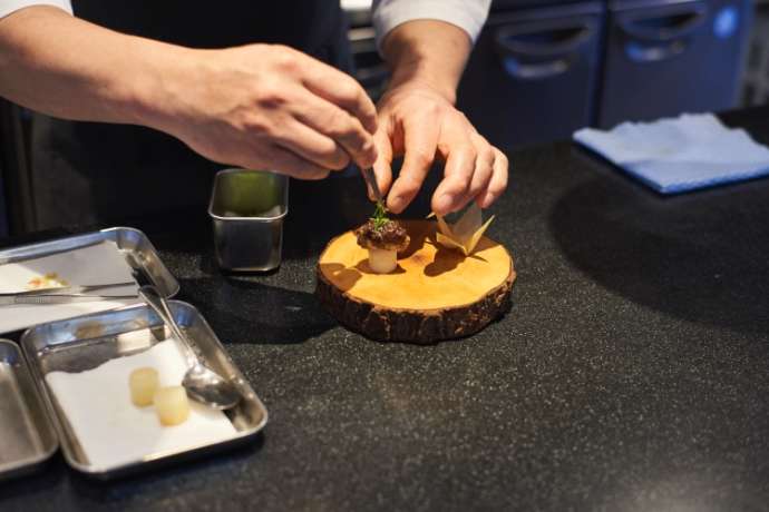 Hashimoto’s multicourse cuisine is a work of art that pursues quality in carefully selected ingredients while using the latest methods of “modern gastronomy” such as instant smoking and vacuum-sealed cooking.