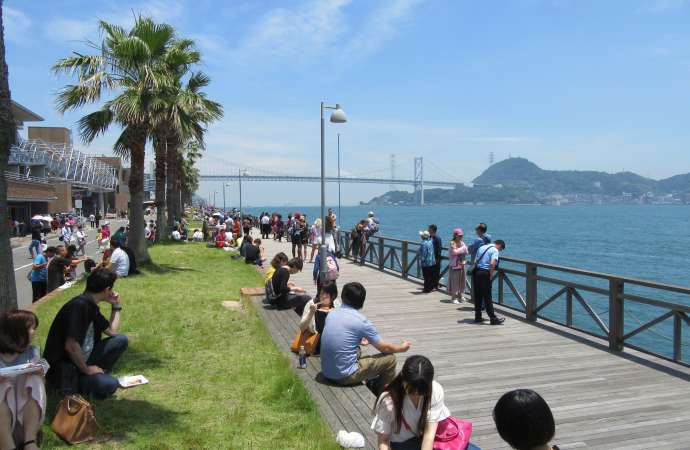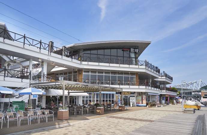 Located next to the Karato Market is Kamon Wharf, a seaside shopping mall with restaurants serving fresh seafood specialties and souvenir shops selling local products. The boardwalk behind the mall is a nice spot to take a stroll and enjoy a panoramic view of the Kanmon Straits. Feel the atmosphere of the port city by looking at the Kanmon Bridge and the ships passing by, as you enjoy the refreshing sea breeze on the wooden deck.