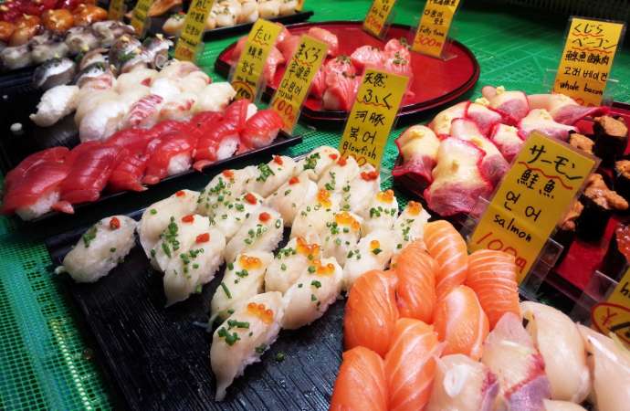 The best time to visit is weekends and public holidays during Iki-iki Bakangai, when the seafood stalls lined up in the market offer visitors a chance to try tasty sushi and other local delicacies, such as seafood bowls, fugu miso soup, fried jumbo shrimps, and fried angler fish. The menus here are all fresh, hearty, and reasonably priced, as they are offered by wholesalers. Recently, vending machines for blowfish dishes have also appeared, quickly becoming a hot topic among tourists.
