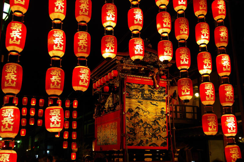 On the day before the festival, you can experience the Yoimiya, when the thirteen floats are displayed and paraded around their respective neighborhoods in the afternoon. The floats are then festooned with paper lanterns and festival musicians playing on or next to the floats.