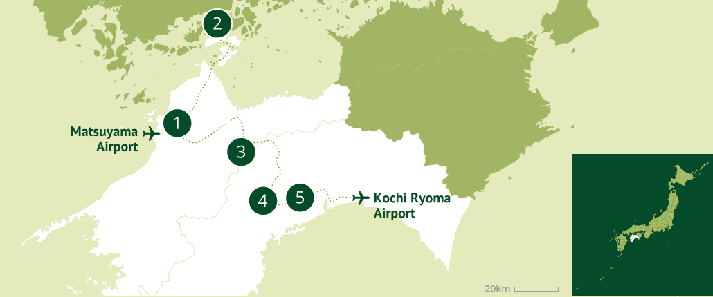Now it’s time to say your farewells to Shikoku, and get on your way home. You’ve seen some of the best of Shikoku and learned about the history and traditions that set the island apart from other regions of Japan. We hope you’ve enjoyed the expansive scenery, the delicious food and sake, and the simple hospitality of the people. And we hope you’ll be back some day to experience some of the many other adventures that remain to be discovered here.