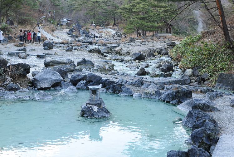 Sainokawara Park lies in a valley not far from Kusatsu Onsen Resort , and offers a relaxing hike around an area rich with hot spring water. You can hear the sounds of the water trickling around you and even see it collecting in little pools. It's also home to one of Japan's largest outdoor hot springs.