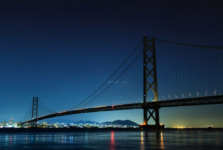 Con casi cuatro kilómetros de longitud, elGran Puente de Akashi Kaikyo es el puente colgante más largo del mundo. El puente une la ciudad de Kobe con la isla de Awaji y continúa hasta Shikoku , como parte de la autopista Kobe-Awaji Naruto. En el puente hay 1084 luces para iluminaciones en momentos de celebración nacional o durante ciertas fiestas y otros eventos, creando un espectáculo de luces impresionante.