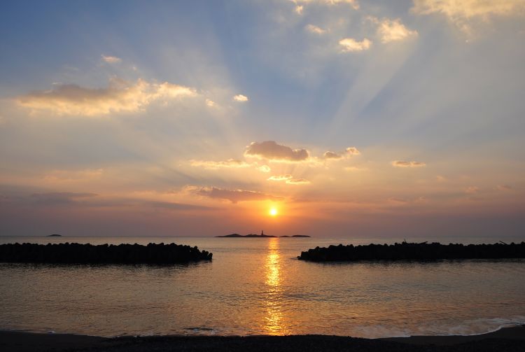 Si haces noche en Hyuga, deberías intentar levantarte temprano y contemplar el amanecer desde el puerto de Mimitsu.