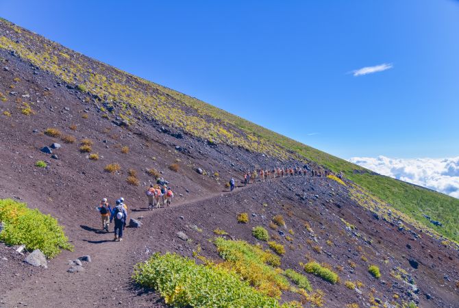 Ni que decir tiene que la experiencia más memorable de la zona es el ascenso a la cima del monte Fuji . Las rutas existentes solo están abiertas entre julio y principios de septiembre, por lo que la mayoría de ellas suelen estar muy transitadas. Aprovecha las últimas horas del día para completar tu ascenso a la cima y evitar así el calor del verano. En los distintos puntos de partida, situados en la 5.ª estación de cada una de las rutas, las temperaturas suelen ser bastante más bajas que en las zonas situadas al pie de la montaña.