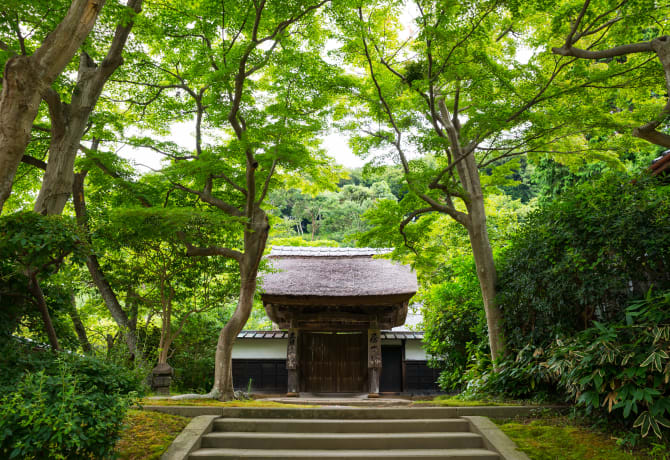 Explora Engakuji , un templo zen y un sitio histórico nacional. No te pierdas la puerta Sanmon, mencionada en varios relatos literarios japoneses y que, según la leyenda, ilumina el camino de quienes la cruzan.