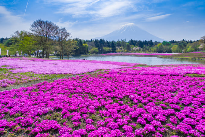 El lago Motosu, el lago más occidental, es conocido por aparecer en el billete de 1000 yenes de Japón. El mirador noreste no solo ofrece hermosas vistas de la montaña, sino que el agua cristalina del lago también es perfecta para realizar actividades al aire libre, como el kayak o la natación. De abril a mayo puede presenciarse una colorida alfombra de tulipanes en flor que añade un toque rosa y púrpura a las vistas del monte Fuji.