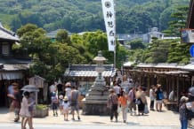 Viaja al pasado en la calle Okage Yokocho. Esta calle, que recuerda a un pueblo tradicional japonés, está repleta de tiendas que venden delicias locales de Ise. Prueba deliciosos platos locales y déjate encandilar por el omotenashi, la famosa hospitalidad de Japón.