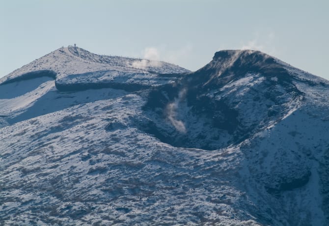 Desde el mirador que hay en el cráter, en el borde exterior del volcán, podrás contemplar el terreno desolado y la capa de sedimentos de lava solidificada en armonioso contraste con las lejanas aguas cristalinas. Si el día está despejado, incluso podrás avistar la península de Izu, el monte Fuji y Hakone.