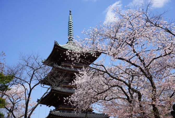 Se cree que el santuario Nezu-jinja se construyó hace más de 1900 años. En abril, las azaleas tiñen la zona de tonalidades rosa. La tranquilidad que reina en el recinto del santuario combina a la perfección con la quietud del barrio residencial que lo rodea.