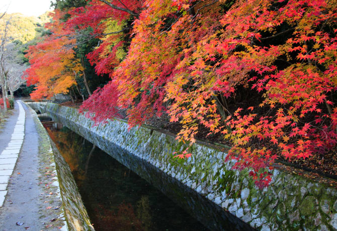 A poca distancia del final del Camino de la Filosofía entrarás en el complejo del templo Nanzenji , uno de los templos zen más importantes de Japón. Su enorme puerta Sanmon de madera fue construida en 1628 para conmemorar a los caídos en el asedio del castillo de Osaka. Sube hasta lo alto de la puerta para disfrutar de una vista aún mejor de sus hermosos colores.