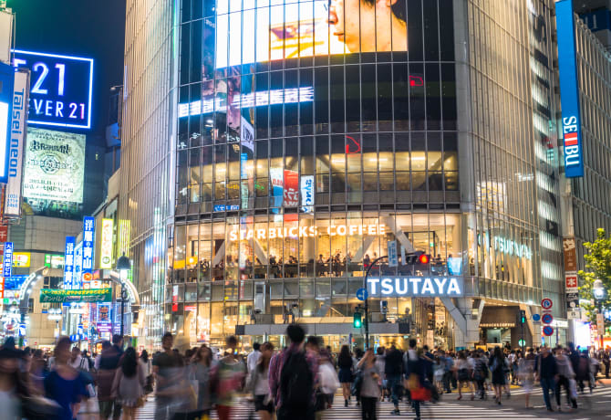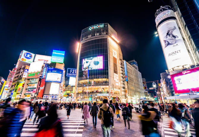 Al salir de la estación de Shibuya, te encontrarás con el bullicioso cruce peatonal y uno de los lugares más emblemáticos de Tokio. Este lugar está abarrotado de gente a cualquier hora del día, pero lo mejor es verlo de noche, con todos los letreros y pantallas iluminados. Además de ser el distrito de compras por excelencia, de noche Shibuya también cuenta con la mejor y más animada oferta de ocio de Tokio.