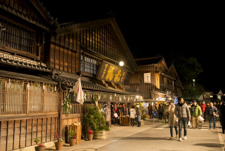Oharaimachi cuenta con una serie de residencias tradicionales que bordean una vía pavimentada. Aquí encontrarás una extensa variedad de gastronomía japonesa, artesanía tradicional y multitud de objetos de recuerdo. Es paralela al río Isuzu, donde podrás disfrutar de un agradable paseo por los amplios senderos que bordean la orilla si necesitas alejarte un rato de la multitud.