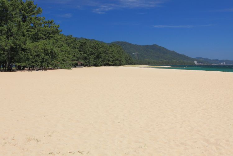 En Amanohashidate no solo hay vistas. En el lado este hay preciosas playas de arena blanca, y allí es donde acuden los locales en verano. Rodeadas de exuberantes pinos, las playas son un espectáculo encantador.