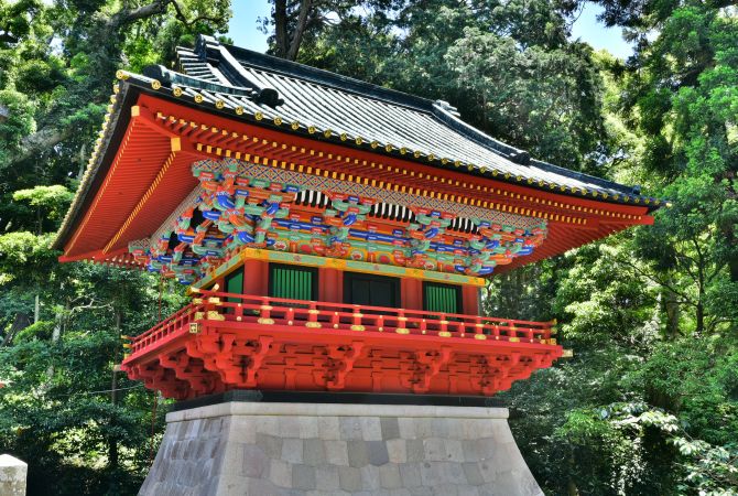 El edificio principal del santuario Kunozan Toshogu se declaró Tesoro Nacional en 2010. Su diseño es intrincado y con una sorprendente paleta de colores, en la que domina el rojo, pero se acentúan el dorado, el verde, el azul y otros tonos.