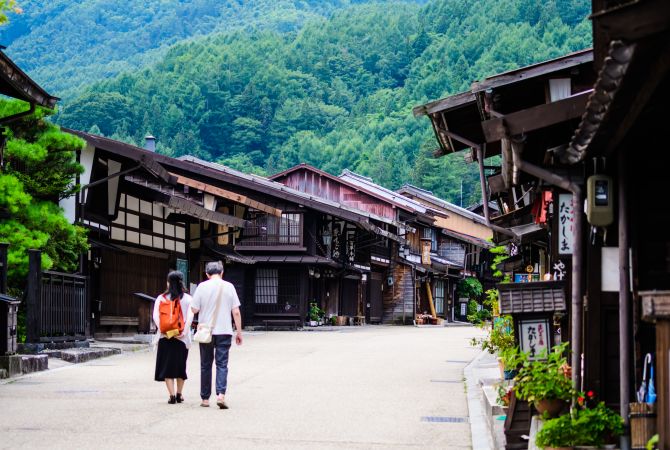 En su tiempo, Narai-juku fue la más rica de las once ciudades que atravesaba el sendero de Nakasendo, en Kiso. Su calle principal tiene un kilómetro de largo. En su apogeo, la ciudad se conocía como «Narai de las Mil Casas». Disfruta de un memorable paseo por el sendero principal. En los edificios de madera de dos pisos puedes encontrar de todo, desde restaurantes de fideos soba y tiendas de sake hasta vendedores de recuerdos y artesanos de objetos lacados. Asómate al interior de la residencia Nakamura de principios del siglo XIX y su elegante jardín para ver cómo vivían los mercaderes Narai. Los templos históricos y los evocadores santuarios que se encuentran justo al lado de la calle principal de Narai-juku ofrecen algo distinto que explorar.