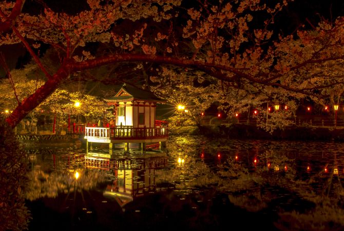 Es considerado uno de los 100 mejores lugares para contemplar los cerezos en flor de Japón