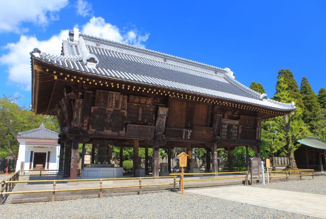 La impresionante arquitectura del templo Shinshoji, en su mayoría declarada Bien de Interés Cultural de Japón, es uno de los motivos de su constante y eterna popularidad. Las salas principales nuevas y antiguas son conocidas por sus esculturas de escamas y su complejidad respectivamente. Por su parte, la adornada pagoda de tres pisos y la Gran Pagoda de la Paz de estilo Tahoto son dos de los principales atractivos.