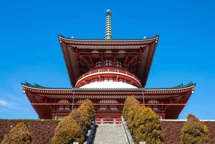 Shinshoji es uno de los templos más antiguos de Japón y acoge multitud de ceremonias budistas. Las estructuras, las estatuas y los objetos sagrados representan siglos de historia. Está dedicado al dios del fuego Acala y es un lugar importante para la escuela budista shingon. Uno de los principales atractivos es el Ritual del Fuego de Goma, una tradición de más de mil años en la que sacerdotes rezan ante una larga hoguera para ayudar a disipar los problemas de los visitantes.