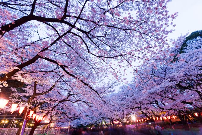 Con más de mil cerezos, el parque Ueno de Tokio se transforma en un mar de flores rosas a finales de marzo y principios de abril. El festival de los cerezos en flor de Ueno es uno de los más grandes y concurridos de todo Japón.