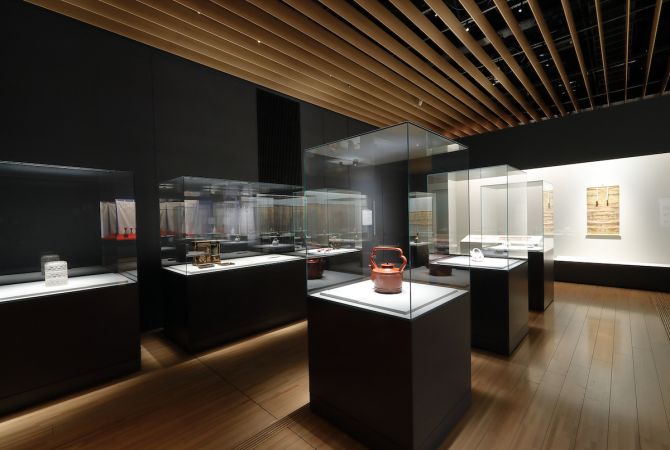 En la sala del sexto piso se organiza una ceremonia del té que se realiza durante los días señalados para la muestra