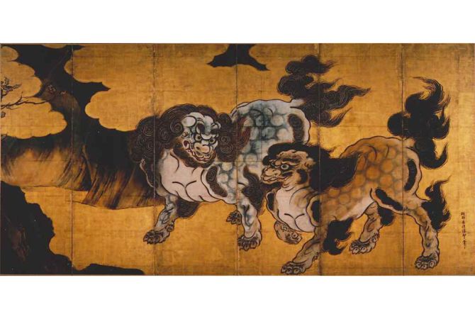Leones chinos (parte derecha), obra de Kano Eitoku. Tesoro Nacional