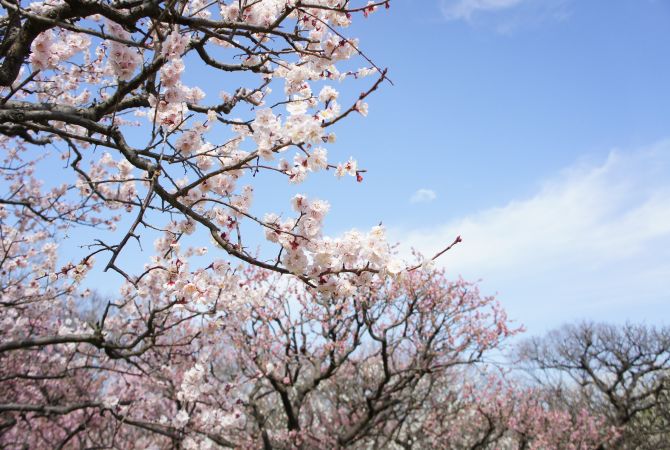 Los cerezos en flor del Parque Conmemorativo de la Expo han sido seleccionados como uno de los «100 mejores lugares de Japón para la floración de los cerezos». Los cerezos Kanhizakura y Higanzakura comienzan a florecer a mediados de marzo, mientras que los Somei Yoshino y otros cerezos tiñen el país de una bella tonalidad rosácea. Los cerezos de este parque suelen florecer a principios de abril. Si te encuentras en Japón durante esta época, no dudes en disfrutar de las agradables temperaturas y del hermoso paisaje mientras te relajas en el recinto del parque, donde los vecinos de la zona suelen acudir para divertirse hasta bien entrada la noche.