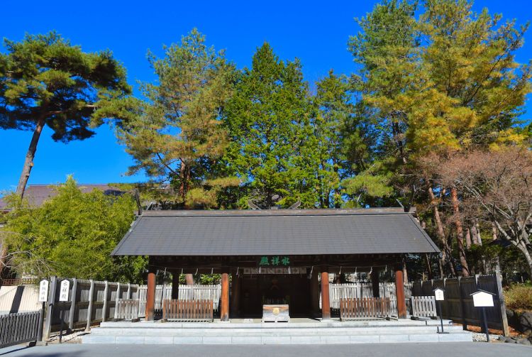 Por otro lado, en el Suisho-den (Sala del Agua), se consagra al agua como deidad principal. La sala está situada en un pozo que es la fuente de agua de manantial sagrada, purificada durante más de 80 años bajo las profundidades de las montañas Yatsugatake.