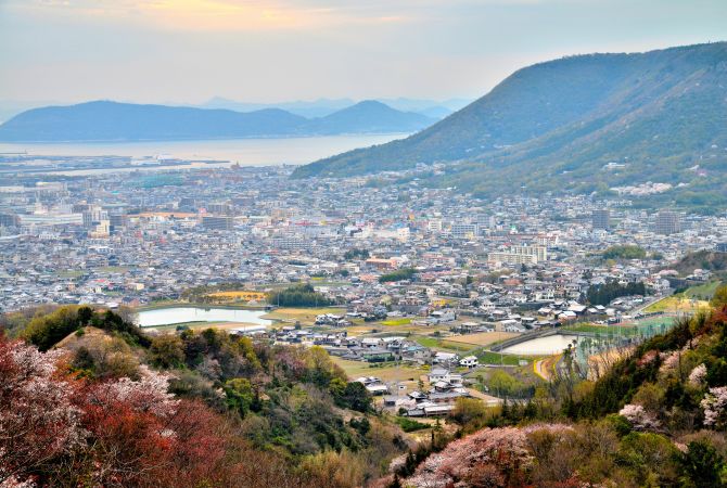 Desde la ciudad de Takamatsu, toma la línea Kotoku hasta la estación de JR Yahima —unos 20 minutos. La montaña está a unos 20 minutos en coche o en autobús lanzadera desde aquí.