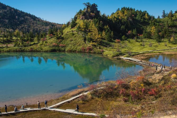 Shiga Kogen, dentro del parque nacional de Joshinetsu Kogen al noreste de la prefectura de Nagano , cuenta con una de las mayores estaciones de esquí del país. Cuando la nieve se derrite, la zona se transforma en un paraíso para el senderismo.