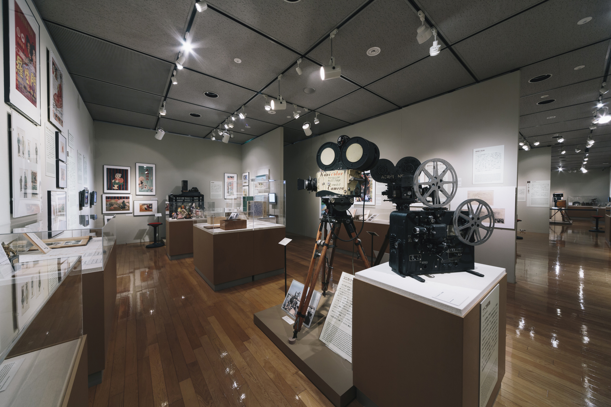 - Exposición de numerosas cámaras cinematográficas y carteles de películas, exposición permanente sobre la historia del cine japonés