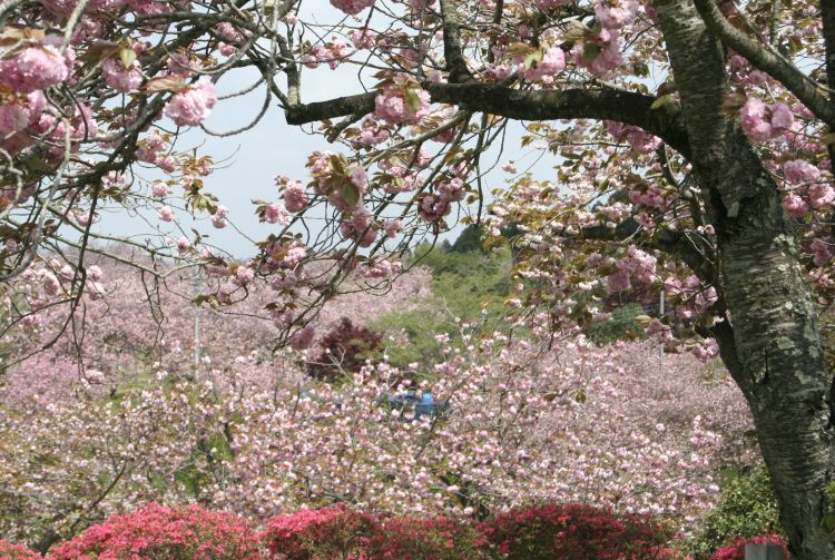 El parque Shizumine Furusato tiene 2000 cerezos de doble flor. Los japoneses consideran particularmente bello este tipo de cerezo en flor. Tiene flores grandes gruesas y de color rosa brillante en comparación con las pálidas del cerezo Somei Yoshino que se encuentran en todo Japón.