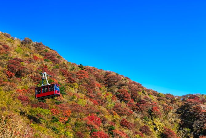 Puedes coger un teleférico desde este punto hasta el monte Myokendake. Sobrevuela un mar de rojos y amarillos y contempla el mundo bajo tus pies.