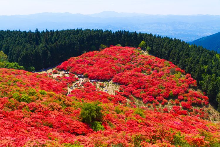 Aunque el paisaje en el monte Katsuragi es excepcional a lo largo del año, adquiere una belleza especial durante la floración de las azaleas a mediados de mayo.