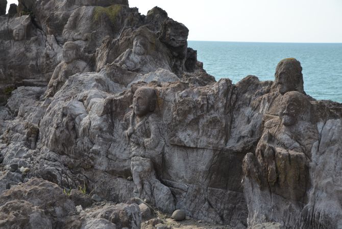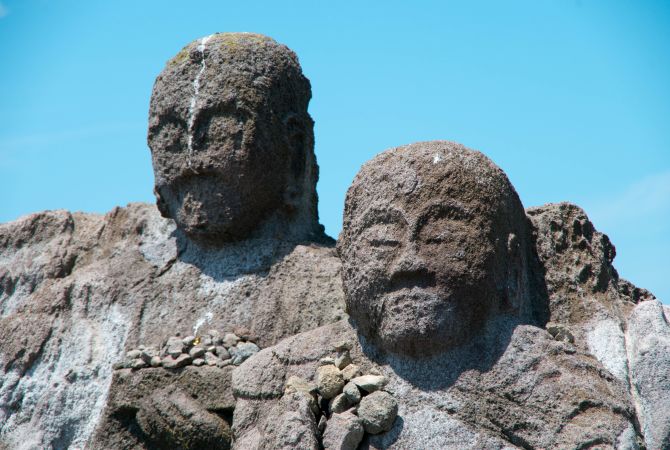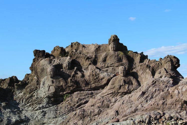 A orillas del mar de Japón y a la sombra del volcán más alto de Tohoku, el monte Chokai, se encuentra un apacible lugar rodeado de misterio conocido como Tallados Juroku-rakan. En las rocas hay talladas 22 caras de figuras budistas, incluida una de Buda, que contemplan de forma serena las inmensidades del mar.