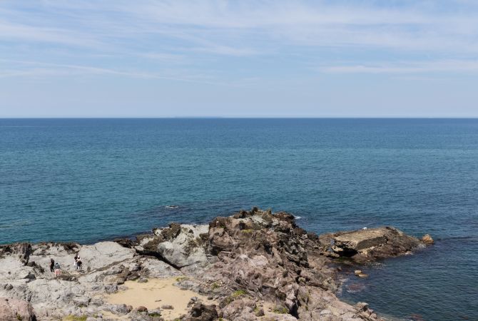 Si el día está despejado, se puede incluso ver la isla de Tobishima en el horizonte, a unos 40 kilómetros de distancia. A los más aventureros les merece la pena reservar un día entero para visitar la isla. Puedes explorar la zona a pie o en bicicleta o, si lo prefieres, relajarte y pescar en sus aguas cristalinas con las vistas impresionantes del monte Chokai al fondo.