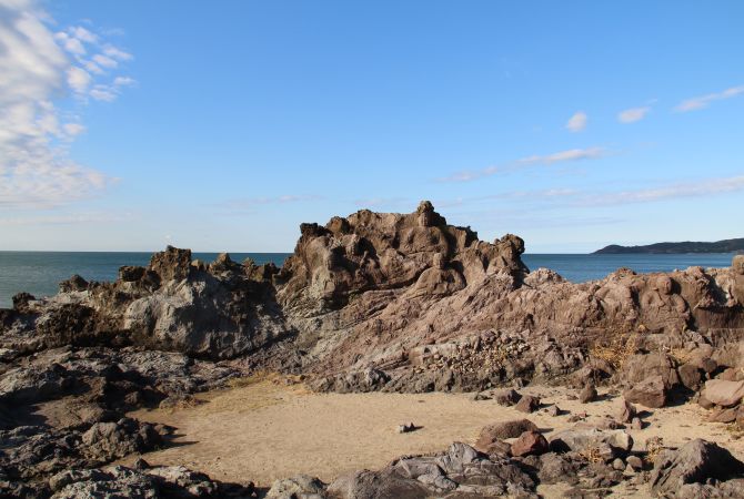 A solo 5 minutos en coche llegamos a la playa de Kamaiso, muy famosa por su pequeño manantial de agua dulce que borbotea desde debajo de la arena. Ponerse sobre las frescas aguas de este manantial resulta especialmente placentero en verano.