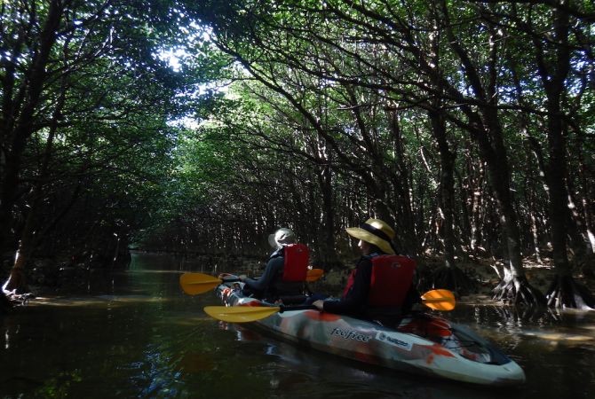 El piragüismo a través de los manglares en la isla principal de Okinawa es la mejor manera de apreciar la verdadera belleza de este ecosistema único. Además de poder hacer piragüismo, hay muchos lugares desde donde se puede apreciar la belleza única de esta región.
