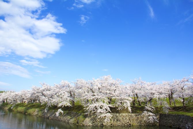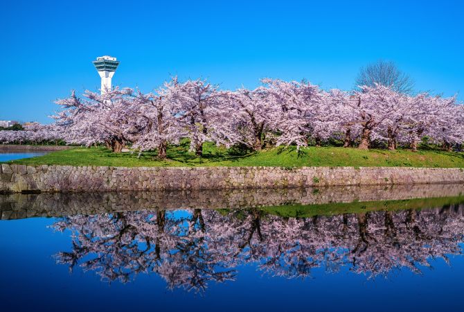 - Las vistas de los cerezos en flor bordeando la fortaleza en forma de estrella desde la torre