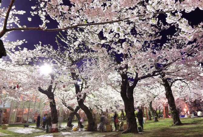 En primavera, pasearse por el parque Goryokaku de día es un auténtico regalo para los sentidos, pero de noche aún cobra más vida. Únete a las celebraciones de grupos de amigos y familiares bajo los árboles iluminados y disfruta de un paseo bajo la luz de los cientos de farolillos de color rojo y blanco que hacen que la atmósfera resulte todavía más mágica.