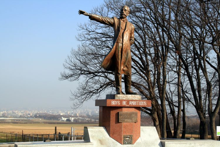El busto original del Dr. Clark en la Universidad de Hokkaido tuvo un éxito parecido, dando lugar a la estatua emblemática actual de la Colina de Observación Hitsujigaoka